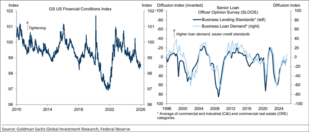 US economic growth is expected to remain solid in 2026, reflecting a resilient economy that avoids recession despite headwinds from tariffs and fiscal policy adjustments. Additionally, economic growth in 2026 is anticipated to broaden beyond the technology and AI-driven sectors, with increased contributions from cyclical areas such as manufacturing, materials, energy, and industrials, buoyed by infrastructure spending and easing monetary policy. This broadening should reduce market concentration risks (i.e., Information Technology) and support more diversified equity performance, including small and mid-cap cyclical sectors of the economy.